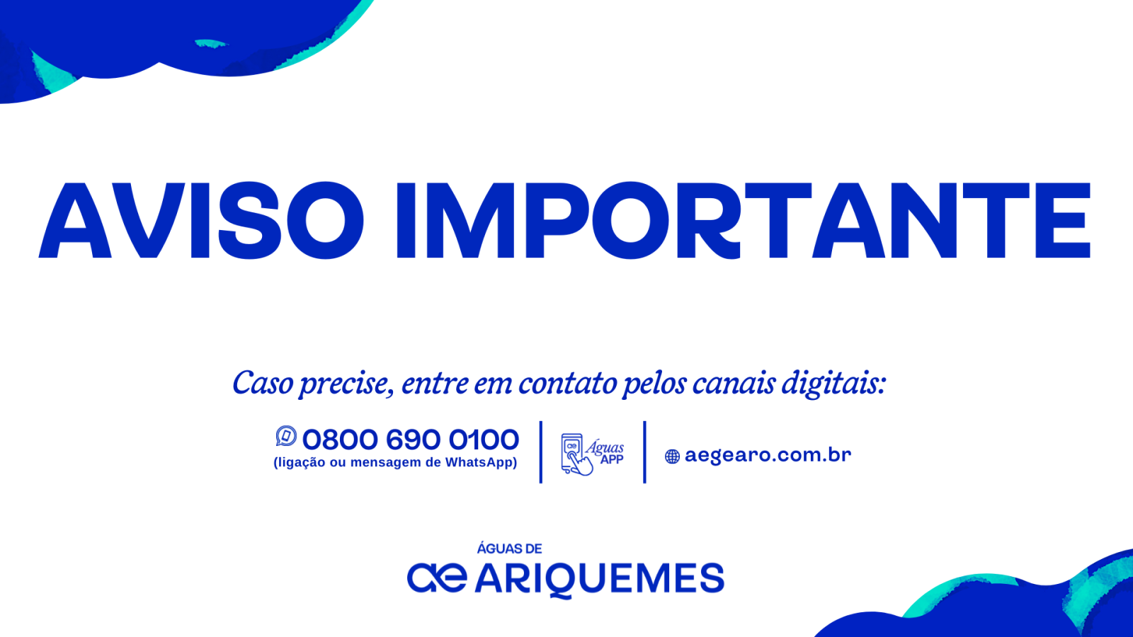 A Águas de Ariquemes informa que realizará, nesta quarta-feira (10), a partir das 06h, uma manutenção programada na Estação de Tratamento de Água, ETA Jamari.
